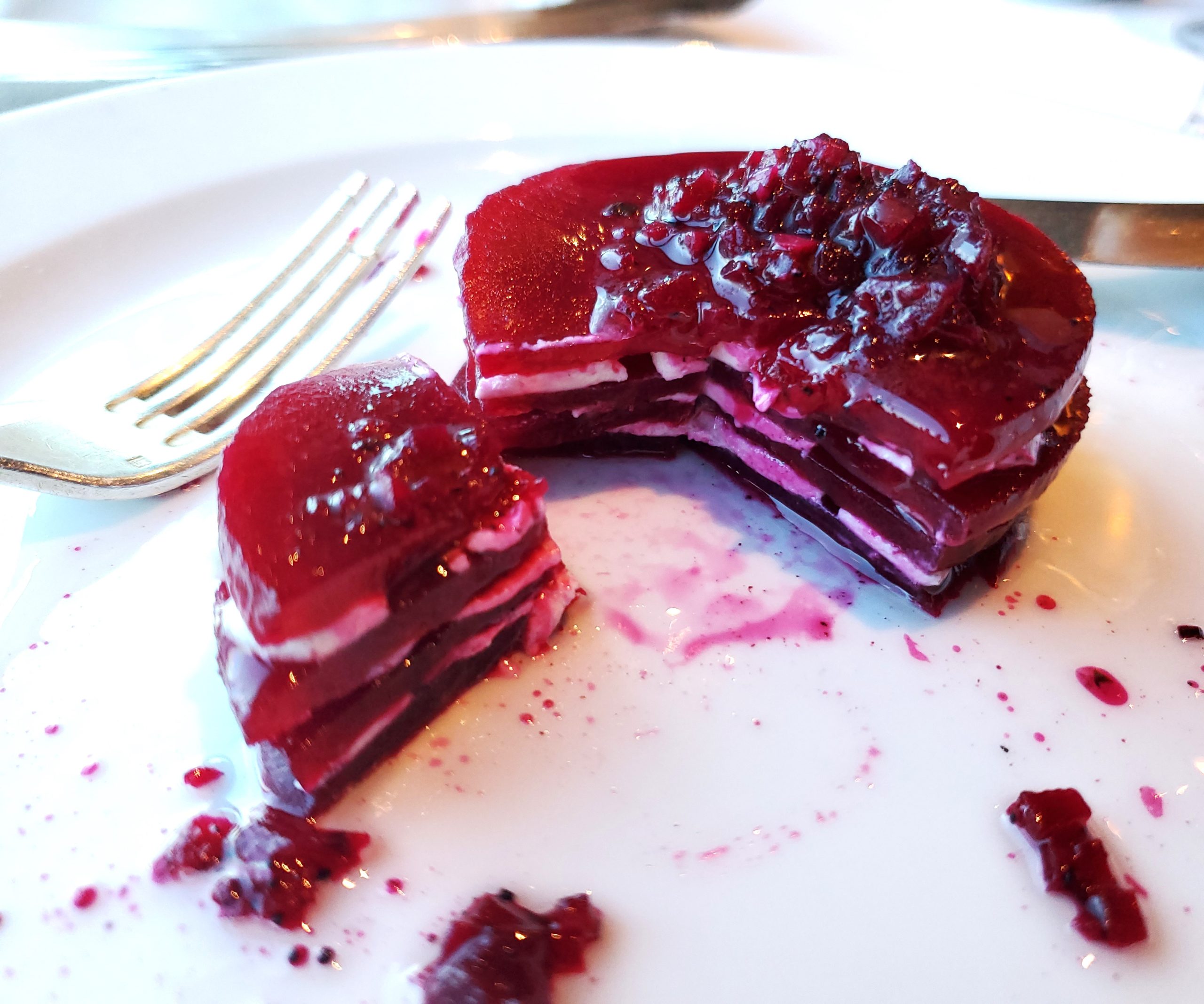 I had two favorite starters…the Sformatino di Pepperoni from Toscano’s and the Roasted Beetroot with Goat Cheese Napoleon from Polo Grill.