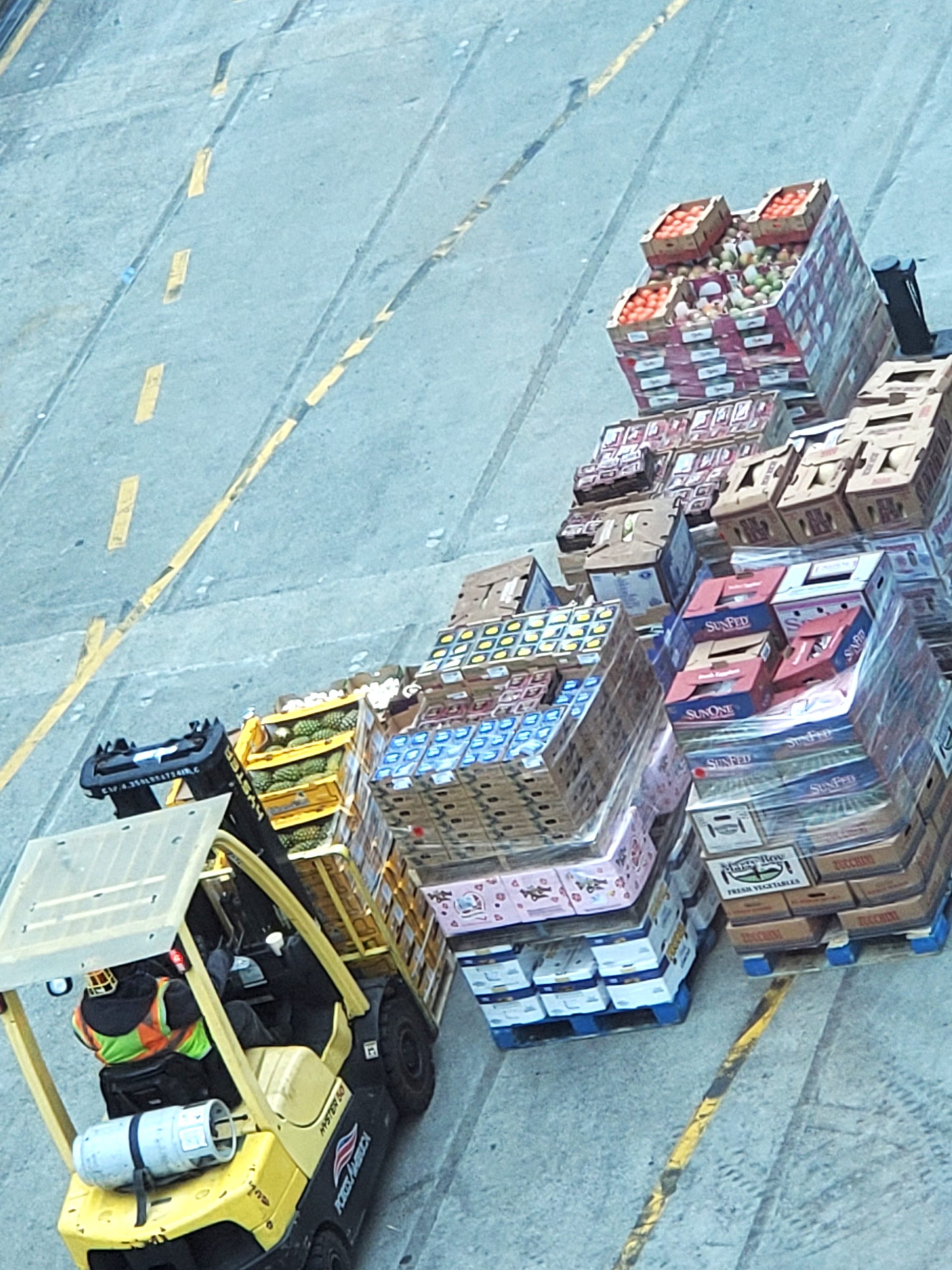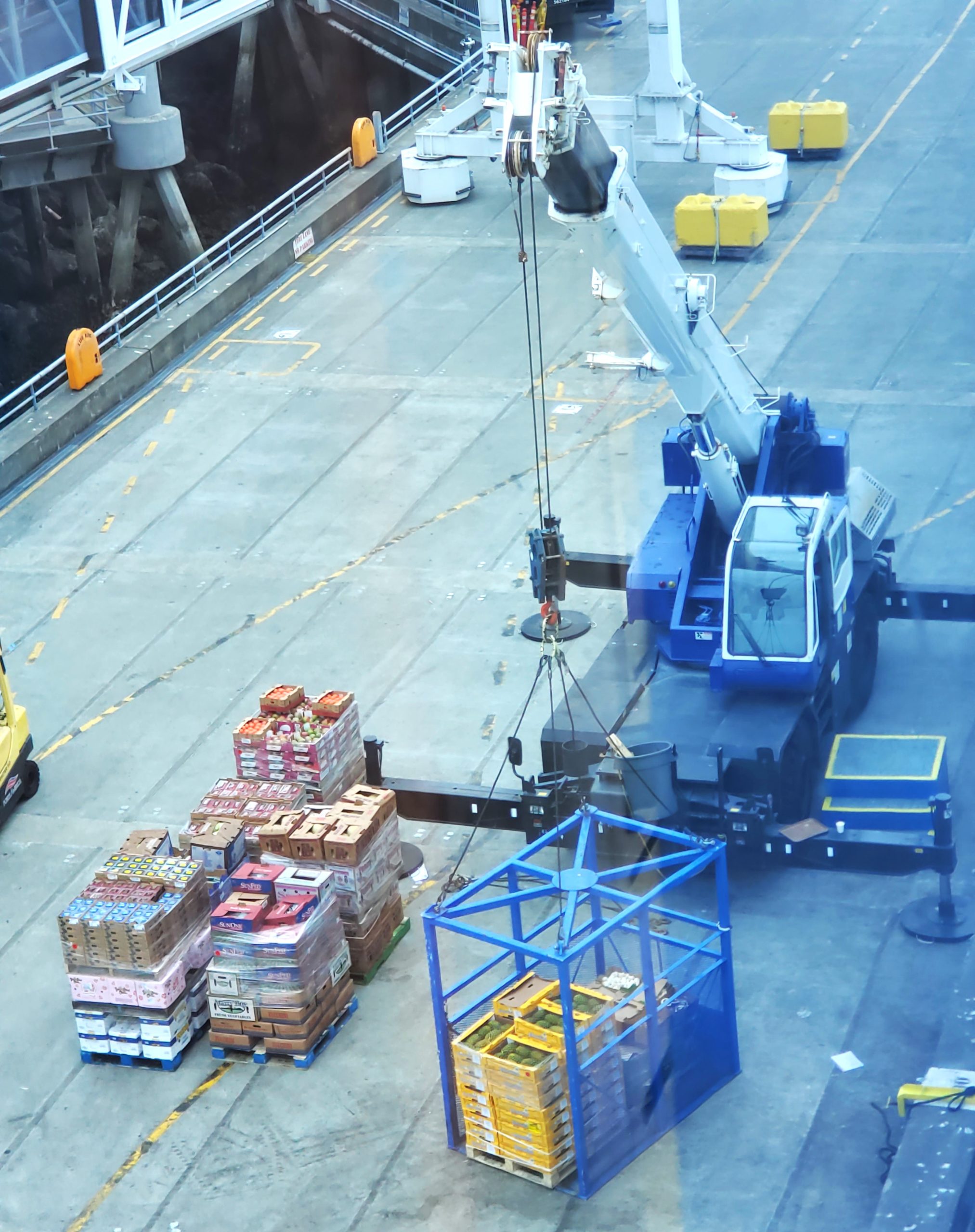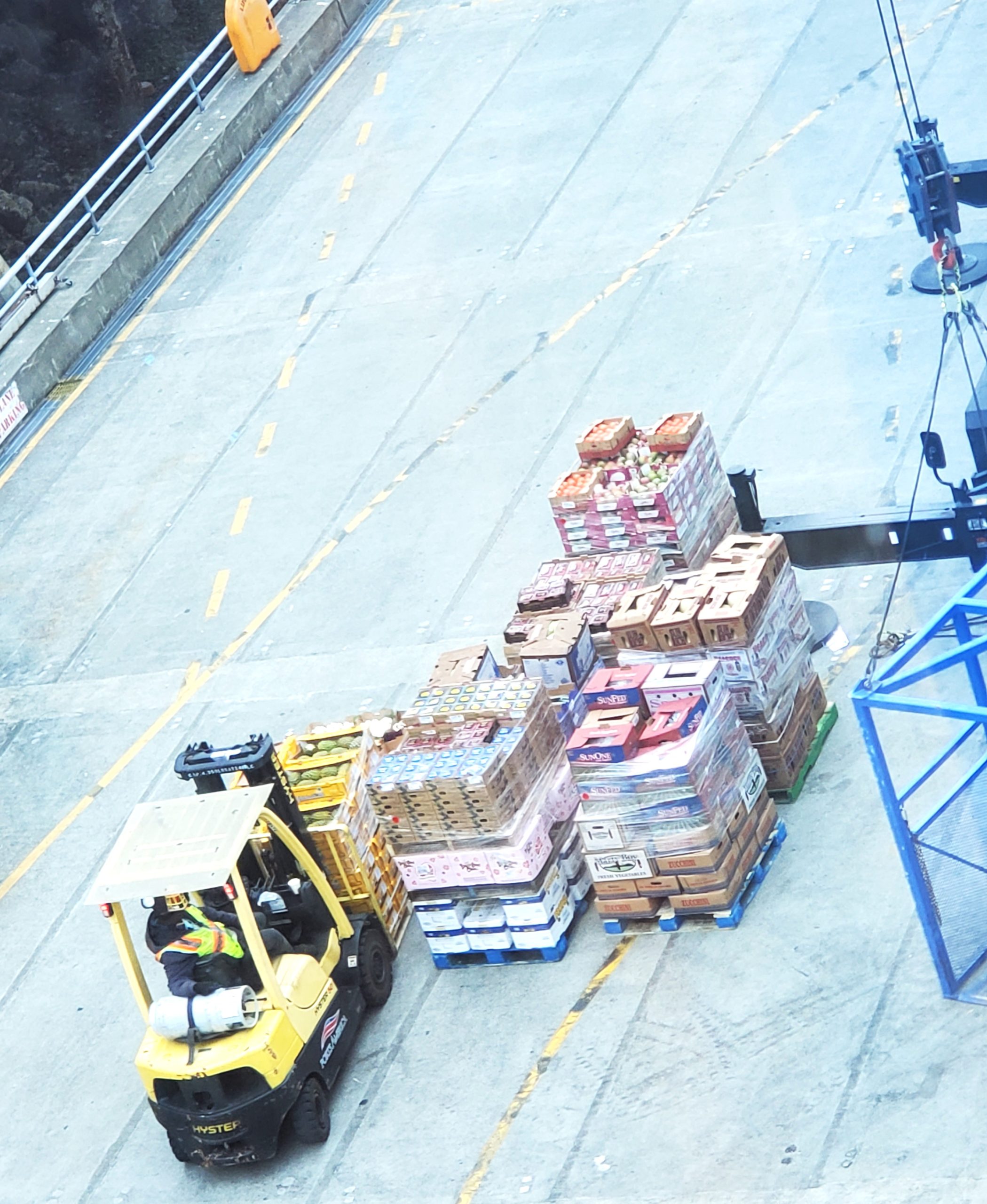 Here are some of the cases of food being loaded at the Seattle pier.