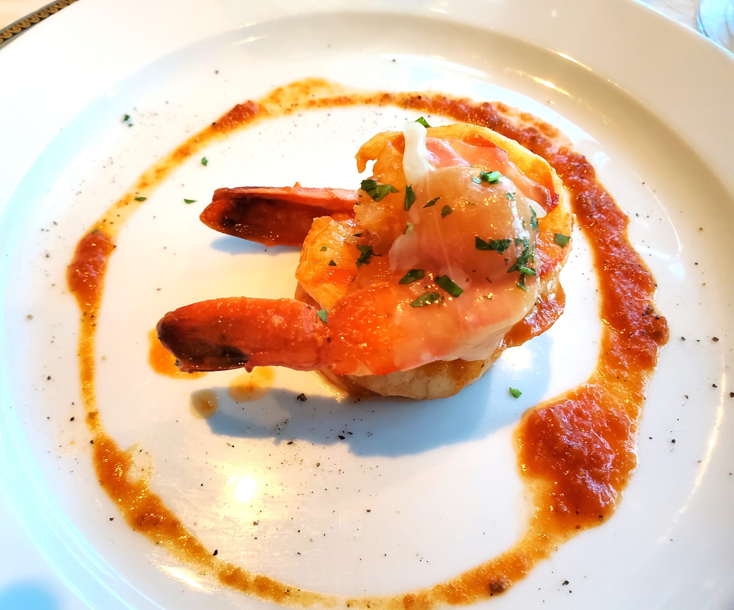 There are 3 exquisite restaurants on the Regatta: The Grand Dining Room; and two specialty restaurants: Polo Grill and Toscano’s. The buffet was also very good. We loved them all. The innovation of classic favorites combined with perfect sauces and garnishes made us hungry for the next meal. We did eat a lot! Here are just a few of the fabulous dishes we experienced.