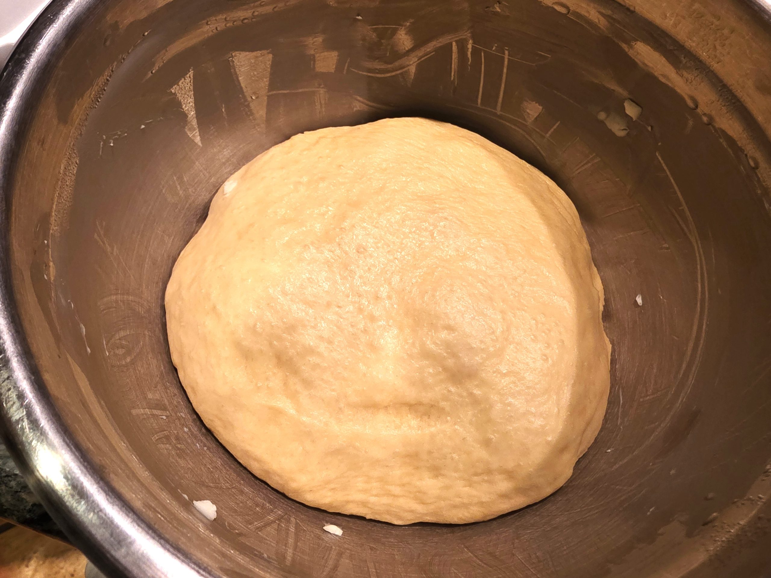 Place the dough in a greased bowl, cover with a damp linen towel and let it rise at room temperature for one hour.